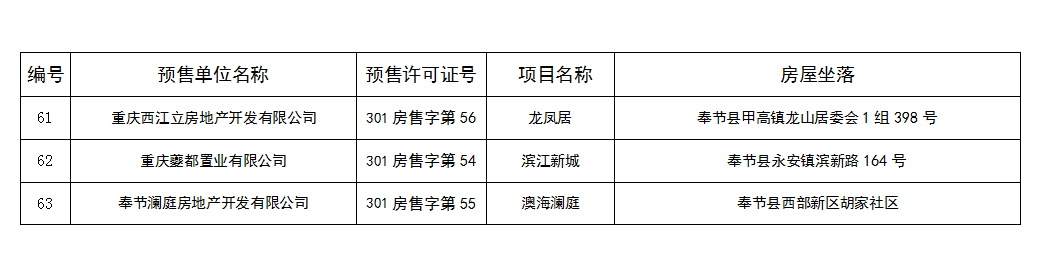 2014年10月商品房预售许可证发放表