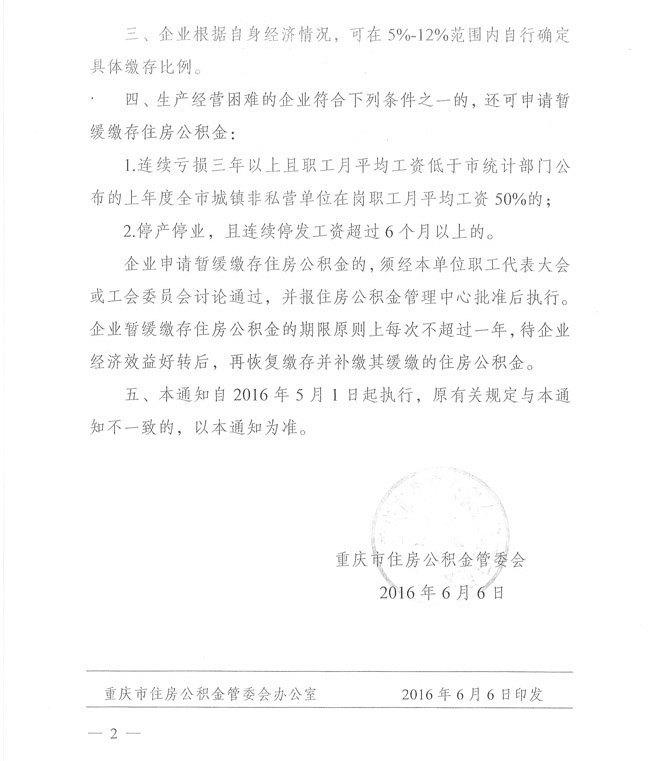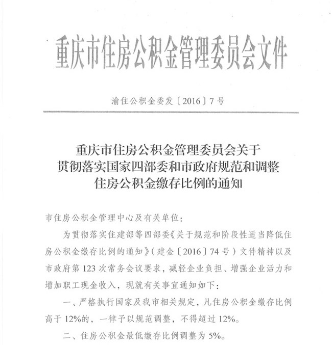 重庆市住房公积金管理委员会关于贯彻落实国家四部委和市政府规范和调整住房公积金缴存比例的通知