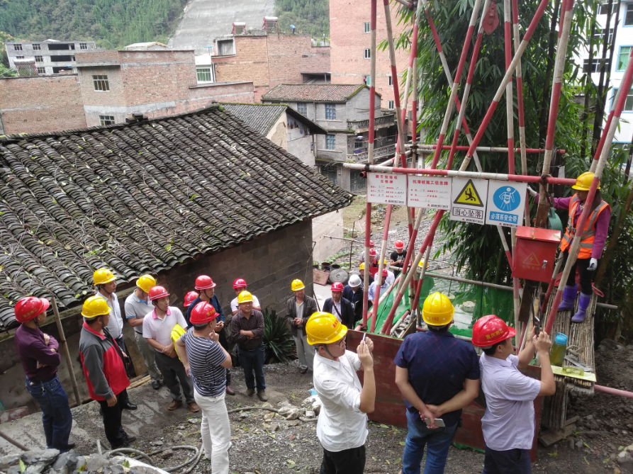 在施工现场,各在建项目相关人员认真听取了重庆南江建设工程公司项目经理关于治理工程规范化建设的介绍,从“优管理、明措施、重安全”三方面分析了工程规范化建设的重要性。随后实地观看了抗滑桩井口架搭建、出渣等现场操作流程演示,参会的各相关人员表示,此次交流学习收获很大,一定将学习内容认真贯彻落实到位,创优质工程,树国土新形象。