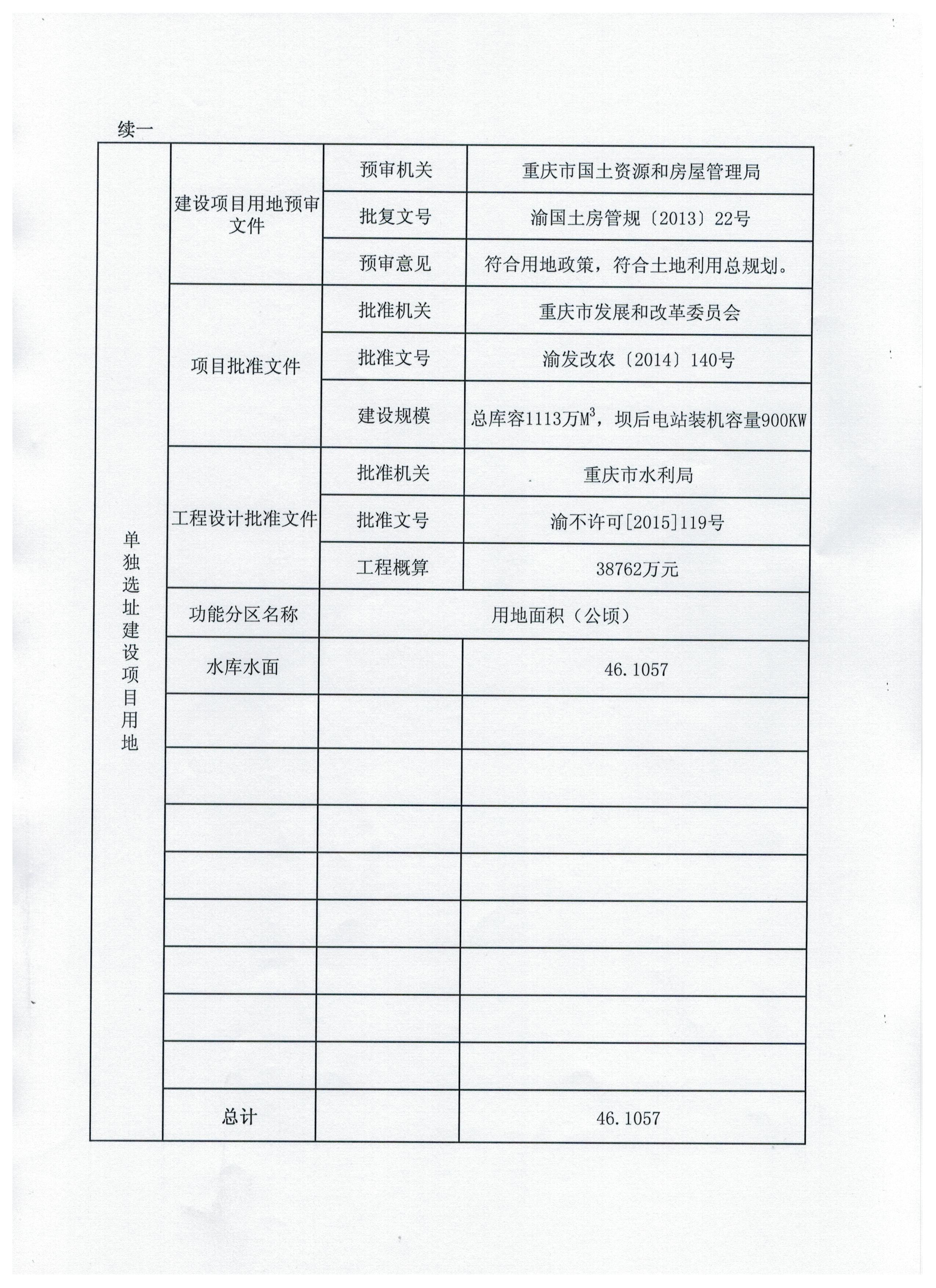渝府地【2016】996号草坪河水库一期一书三方案