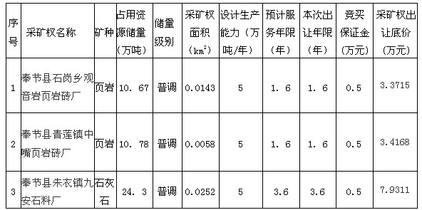 根据《中华人民共和国矿产资源法》、《矿产资源开采登记管理办法》、国土资源部《探矿权采矿权招标拍卖挂牌管理办法(试行)》及《重庆市矿产资源管理条例》等规定,为深化矿产资源有偿使用制度改革,培育和规范矿业权市场,促进我县矿产资源合理开发利用,奉节县国土资源和房屋管理局依法公开挂牌出让以下采矿权,现将有关事项公告如下: