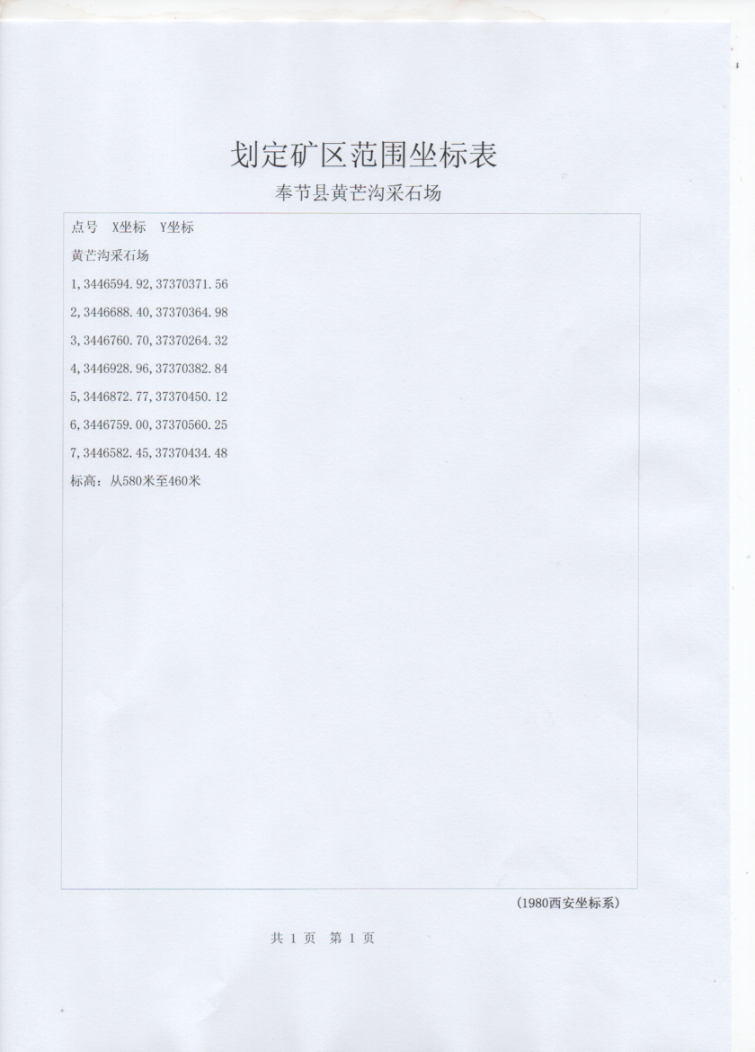 奉节县黄芒沟石灰石开采有限公司黄芒沟采石场位于奉节县草堂镇东坡村6社,开采矿种为建筑石料用灰岩,储量148万吨,开采面积0.0520Km2,开采规模20万吨/年,矿区范围拐点坐标及开采标高详见附表。按照有关文件要求,经奉节县国土房管局2017年11月3日局党组会研究决定,将奉节县黄芒沟石灰石开采有限公司黄芒沟采石场采矿权(扩大矿区范围增划资源)协议出让给奉节县黄芒沟石灰石开采有限公司,采矿权出让综合价款61.25万元。按照2017年6月23日全市矿管工作会议要求,在市级矿业权出让收益征收管理办法出台之前,暂出让采矿权1年;按原出让方式暂收取采矿权出让综合价款的20%,为人民币大写壹拾贰万贰仟伍佰元(小写¥:122500.00元)。市级矿业权出让收益征收管理办法出台后按新政策要求执行。现予公示。